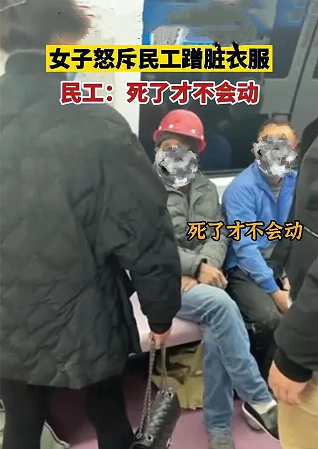 女子在乘坐地铁时,不小心被农民工蹭脏了衣服,结果还不等对方道歉,女子就激动地冲着农民工大骂,言语十分嚣张。