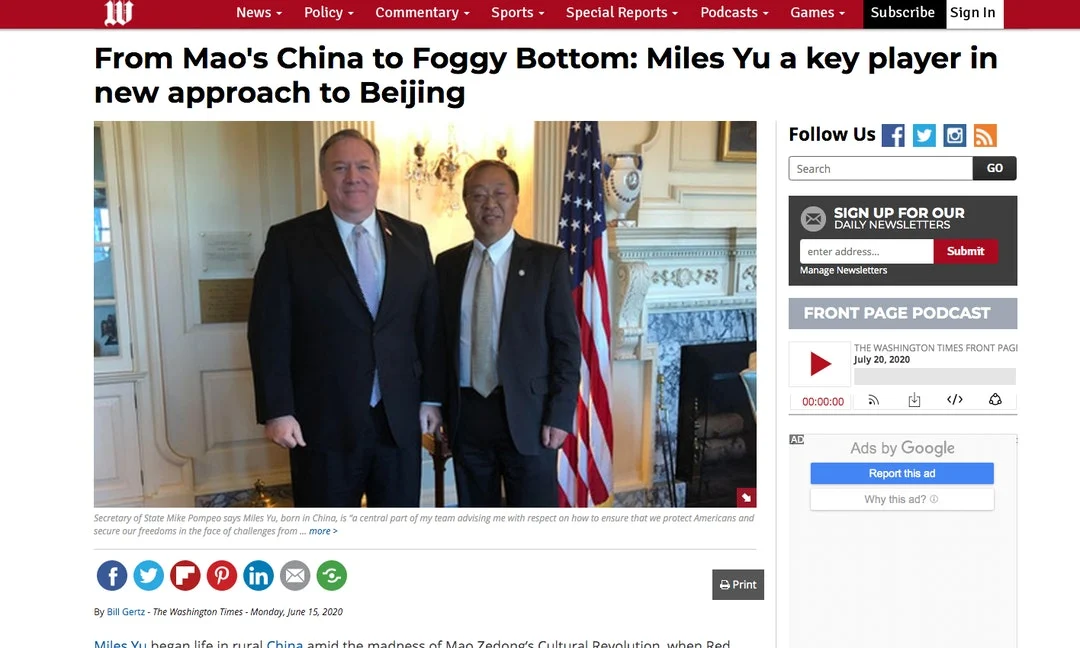 他是国务卿蓬佩奧的左膀右臂,被蓬佩奧认为是团队的核心,更是被白宫亚太事务助理国务卿史迪威赞扬“余茂春先生是国宝”。