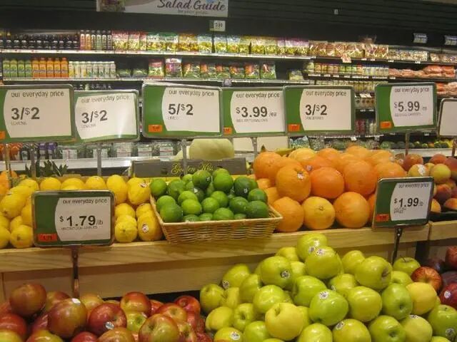 在很多美国超市,食品类商品打折的力度非常大,以水果为例,苹果的价格是0.49美元一磅,相当于人民币3.3元一斤,新鲜香蕉0.55美元一磅,相当于人民币4元一斤。除此之外,美国的肉类、牛奶、蔬菜等价格也十分便宜,如果赶上超市打折促销,几乎就跟白送一样。