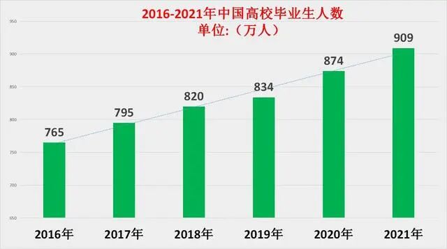 根据数据显示;我国2021年的大学生毕业人数高达909万。