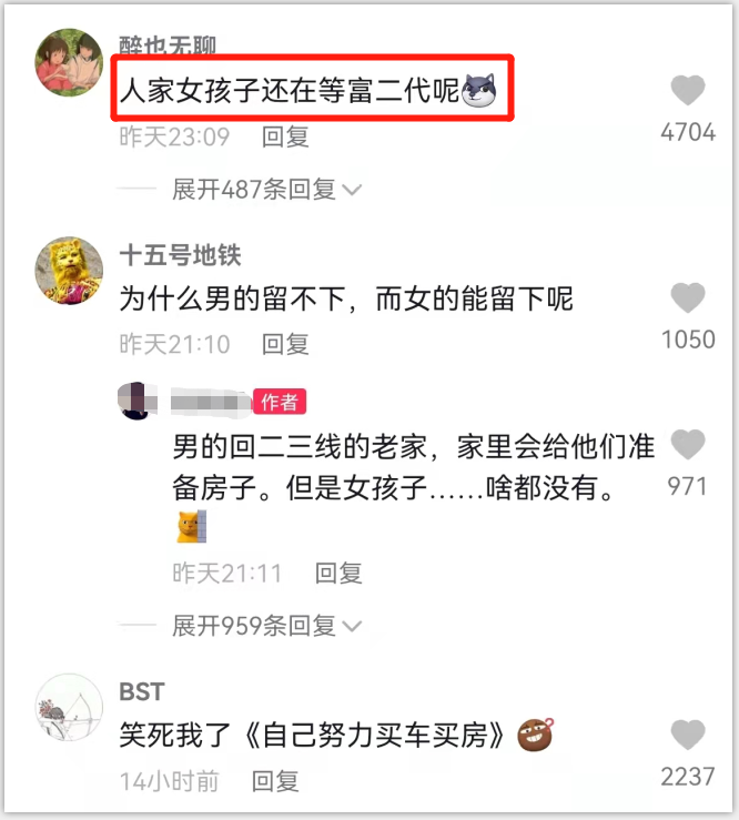 而第二方面则是因为户籍问题,对于那些地地道道的上海人而言,她们就会希望能够找一个上海本地的男生,或者是已经买得起房的人,而这样条件的人其实真的很少。因为上海其实还是一个比较排外的城市,虽然上海很繁荣,但是上海人也是保留本地话比较明显的一个地区。