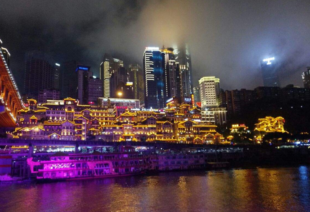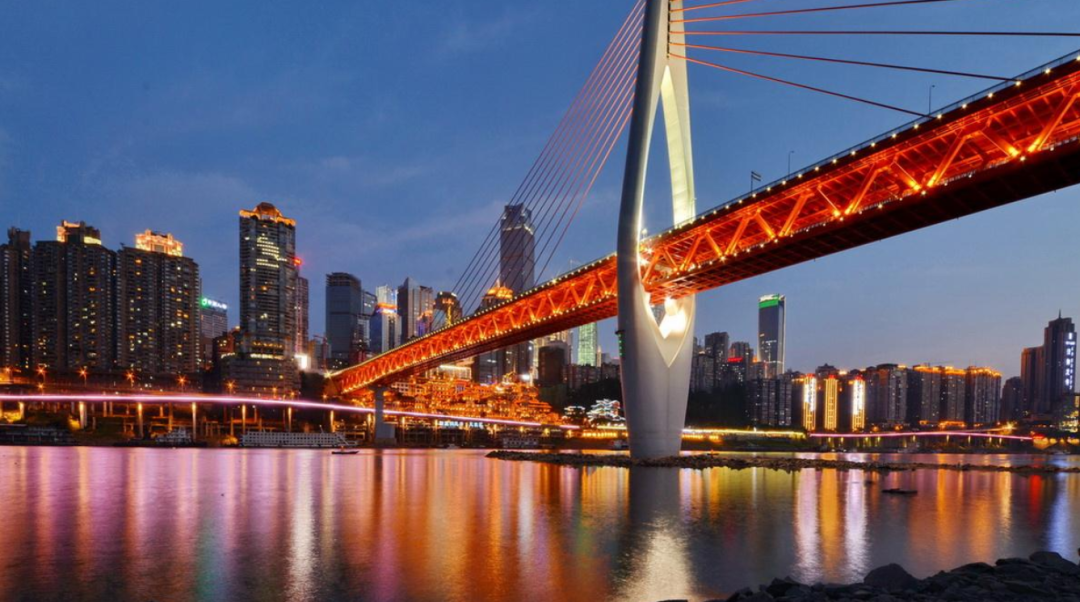 长江两岸的多座大桥与洪崖洞构成了足以媲美维多利亚港的夜景。