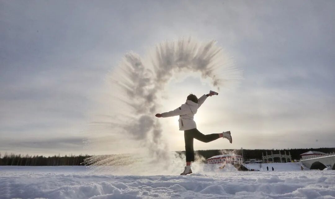 除了宁静闲适的人文气息,北极村的自然条件也令早起拍日出、熬夜拍星空、亲身上阵体验泼水成冰的人都乐此不疲,泼水成冰一向被认为是东北高寒区才有的“特产”,在零下二三十度的低温天气里,把一杯热水洒向空中,瞬间能形成泼水成冰的效果。