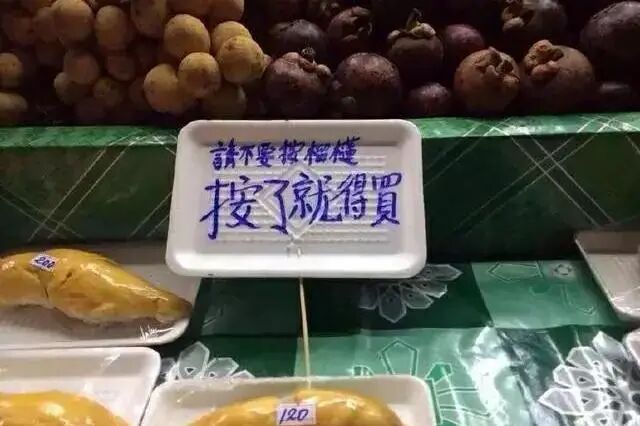 虽然说看似商家卖水果要求不能按压好像是无可厚非的事情,但是还是会让中国人觉得反感,毕竟在我们国家习惯买水果的时候就是要多摸一摸,毕竟有些水果只要摸在手里才知道有没有坏,还要根据软硬度来判断一下成熟度,你标着摸一下就得买,不就有强买强卖的味道了吗,宁愿不买也不受你这个气!