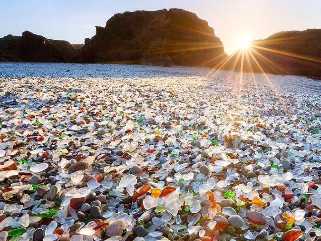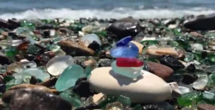 曾经是倾倒处理废弃啤酒瓶和瓷器的地方。但随着时间的推移,大自然已经把这些玻璃碎片变成了千变万化的如软糖般的“鹅卵石”。