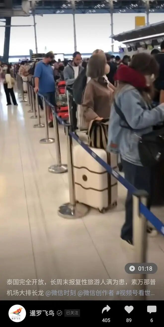 6月1日起,泰国已全面开放!赴泰外国人入境无需隔离。泰国国内娱乐场所也相继恢复营业,人气也越来越旺。曼谷素万那普国际机场迎来人潮,办理登机手续的人群排队排出候机大厅,一眼望不到头,恢复势头不错!