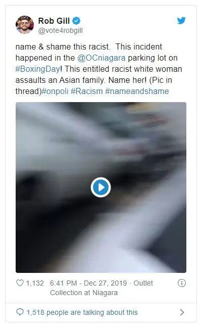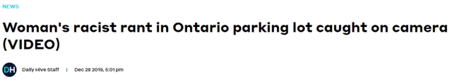 曾经在安大略省尼亚加拉一个购物中心外的停车场里,一个白人大妈像嗑药了一样谩骂华人,不仅朝华人竖中指、撅屁股,还恶人先告状般叫嚣着要打911报警!