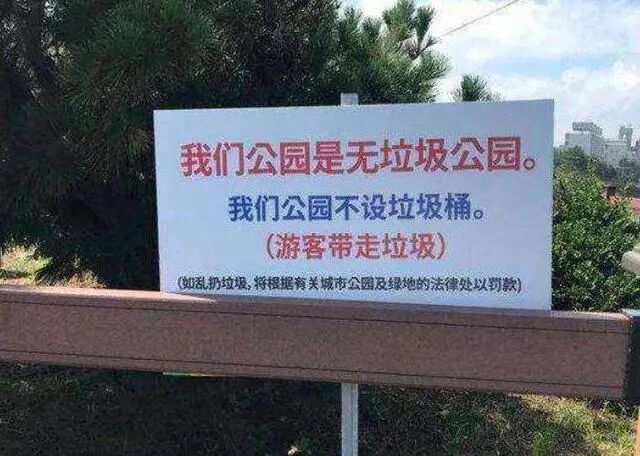 韩国对中国游客的态度却不友善,甚至在很多景区打上标语,备注中文标注明显的是在对中国人产生一种歧视,告示语用中文标识,上面写着“我们公园是无垃圾公园,我们公园不设垃圾桶,游客带走垃圾”的告示。