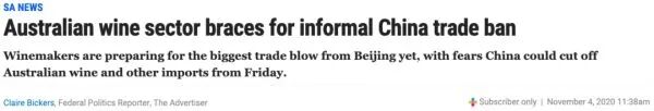 许多中国进口商收到口头指示,要求停止澳大利亚葡萄酒的进口,这将对价值超过十亿澳元的市场造成了打击,而且对南澳的影响将远超过其他州!