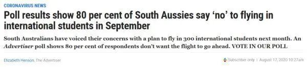 南澳民众的强烈反对。网上的一份投票显示80%的人不希望留学生入境。