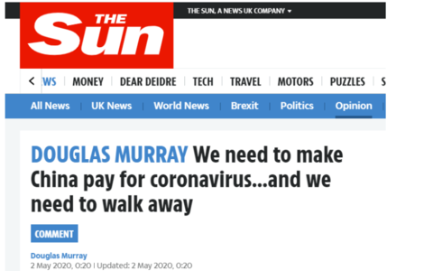 穆雷在英国小报《太阳报》上要求中国赔偿的文章