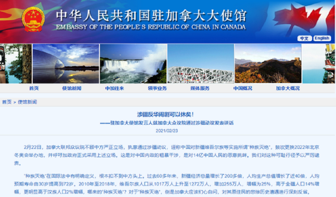 恶毒抹黑攻击中国。在这些国家中间,加拿大一直站在前列。部分问题,完全是对中国内政的干涉。