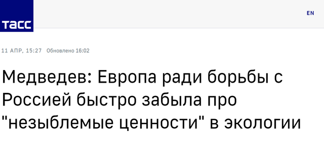 欧洲还是美国勤勉的学生,准备快速纠正自己,仅仅是为了故意刁难俄罗斯和为美国的钱包(这不会考虑到欧盟国家的环境和公民健康)感到高兴。令人感到震惊的是,这些欧洲人不假思索地摒弃了近几十年来秉持的“不可动摇的价值观”,无视所有“全球挑战和威胁”,寻求获得令自己感到幸福的东西——(美国)肮脏的新的能源。