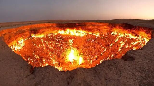 最有名的景点当属地狱之门了,40多年前前苏联的地质学家在沙漠中心勘测,钻井时突然坍塌成了一个直径约70米的巨型大坑,并不断泄露有毒气体。为了解决这一问题科学家点燃了气体,大火一直烧到今天从未熄灭。地狱之门的出现也为土库曼斯坦添了一笔魔幻色彩。