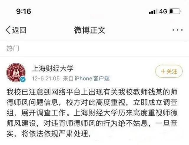 一篇标题为“上财知名教授在校园内公开骚扰女学生”的文章在网络上引起了轩然大波,成功将人们关注的重点从“北大博导”事件上转移过来,而据这篇爆料文章称,受害人是上海财经大学硕士研究生,而她要举报的对象正是自己的专业课导师——上海财经大学副教授钱逢胜。