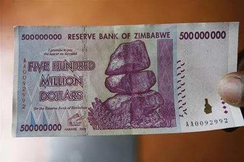 津巴布韦,自从这个国家获得独立以来通货膨胀率已经到达了2,200,000%。一千亿的津巴布韦币仅仅可以换来一美元。