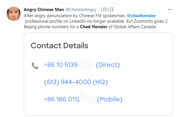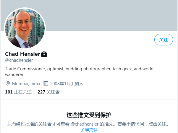 根据Zoominfo上的公开信息,韩思乐曾在2004-2006、2013-2016年任职于加拿大全球事务部,2006-2008年他还曾在加驻印度使馆工作过,主要负责的就是贸易行政部分。