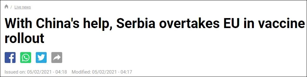 如果你知道(中国疫苗)价格的话,总有一天,你会为我立一座纪念碑。”塞尔维亚总统武契奇语带自豪。