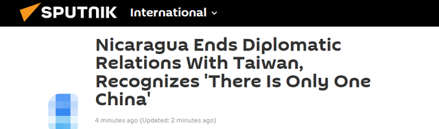 2021年12月10日,尼加拉瓜跟中国复交,成为世界上第181个承认和支持一个中国原则的国家。台湾同步丢失一个“重量级”“邦交”。