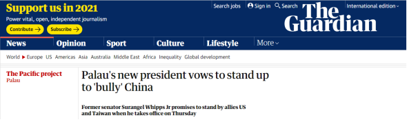《卫报》:帕劳新总统誓言要顶住中国的“欺凌”