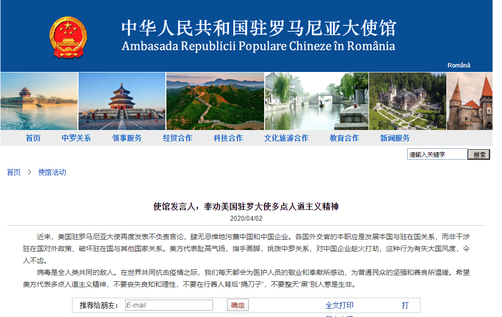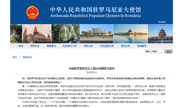 美国驻罗马尼亚大使再度发表不负责言论,肆无忌惮地污蔑中国和中国企业。