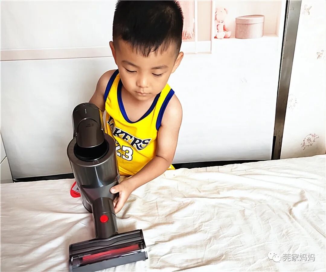 与生俱来的好奇心,使得他们模仿我们平时搞卫生的样子,拿着吸尘器一遍遍地在沙发、床褥和玩具上除螨。有模有样的,俨然是一个“家务小暖男”的做派。身为妈妈,没有什么比看着自己的孩子成长更开心的事了!