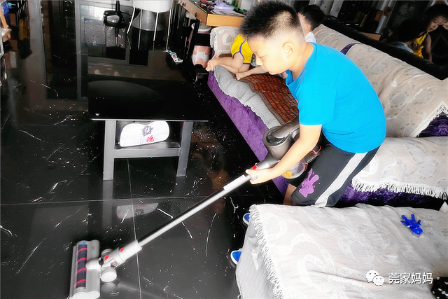 有过“切肤之痛”的小家伙,看到我忙得不亦乐乎,自己也萌生了承担起“小当家”的责任。熊孩子也有展露天使一面的时候,自从小狗吸尘器买回来以后,便成了他俩最大的玩具。