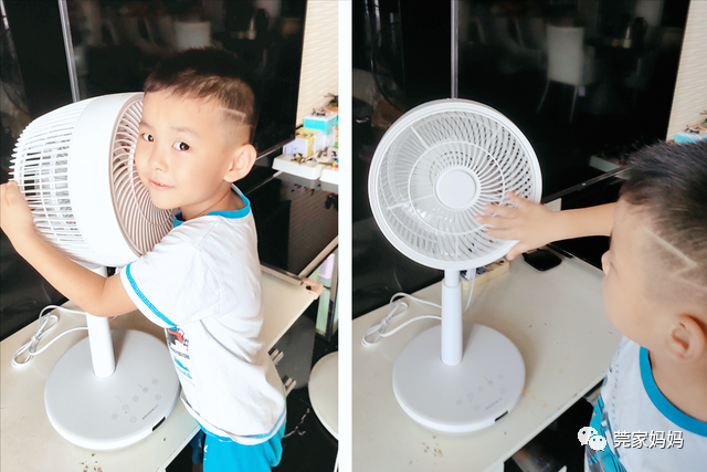 如此,孩子即便是在风扇面前对着吹,也只会感到自然的微风扑面、凉风习习,却不用担心被吹感冒或吹得头疼。