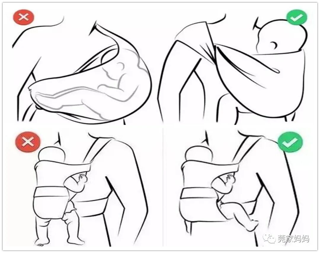 另一个方面,宝宝与妈妈保持亲近,哭闹少,妈妈也有更多精力照顾宝宝和自己本身,以及家里的其它事情。良性的循环,使妈妈不至于感到太焦虑,对自主育儿更有信心,同样能有效减少抑郁的发生。★背带虽好,但要合理使用,使用不当或导致3方面问题