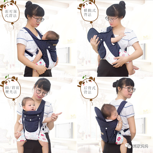 综上所述,根据对婴儿背带的好处和影响进行分析,好不好不言而喻。在此莞妈建议:婴儿背带可以使用,必要时使用,但需正确使用、有限度使用,这才是正解。★如何正确使用背带?各月龄采用不同背法