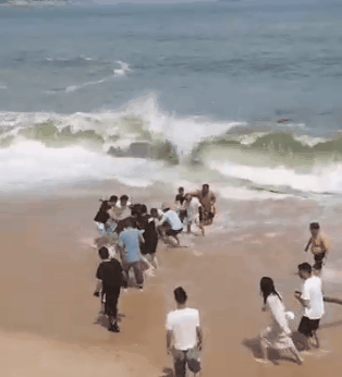 又有多人不顾安危冲向大海