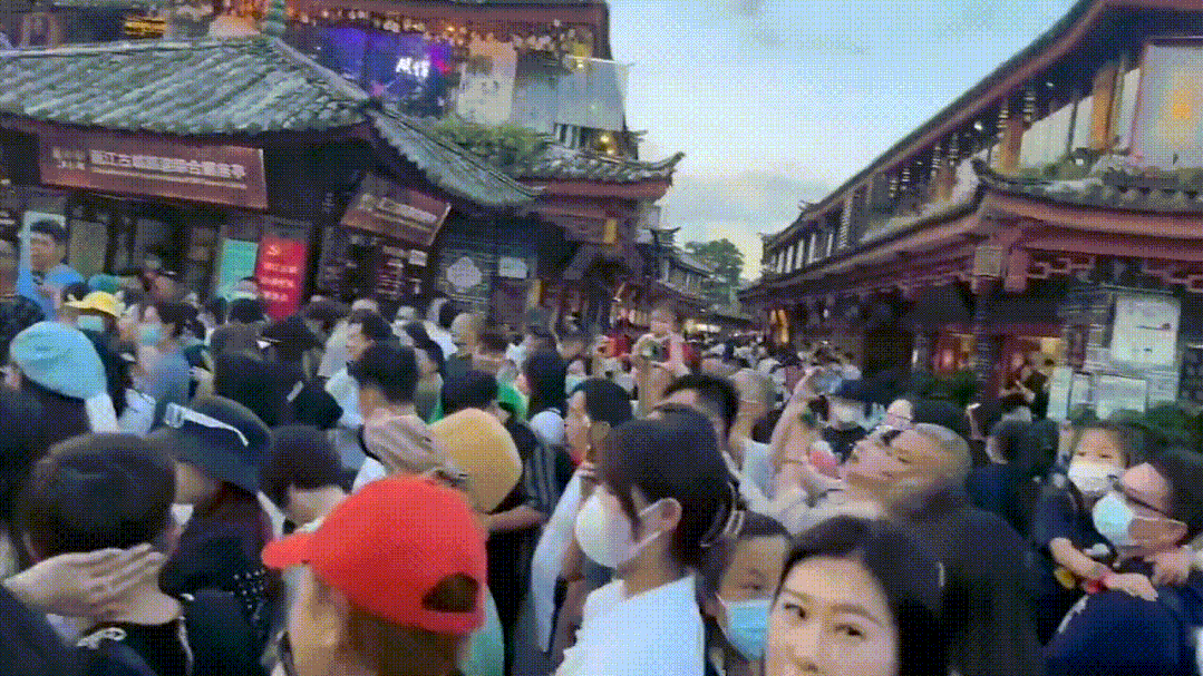 7月12日21:13分,古城瞬时人流55747人次,新华街、新义街一度出现拥堵,两个街区最高峰值25706人次,达到该区域承载量的一半。