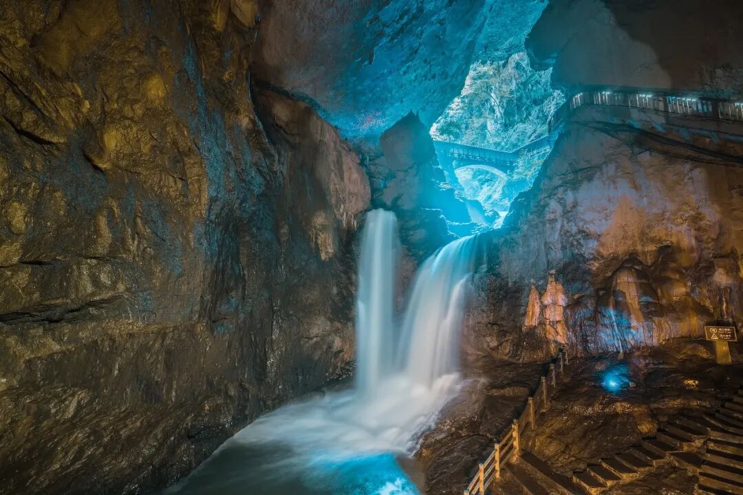 由于地表溶蚀过程,昆明九乡风景名胜区内形成了距今5亿多年的多层岩溶洞穴、地缝式峡谷、天坑、洞穴瀑布、边石坝、高原湖泊等典型的喀斯特地质奇观。深深的洞穴里面,不仅风景让人叹为观止,而且气温比外面低了不下10℃。初入洞内,冷气逼人,洞内泉流澄清皎洁,水石相映成趣。