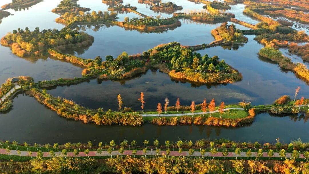 沿着昆明捞渔河湿地公园的栈道穿行,到处绿意盎然,眼前整齐有序的树木屹立在浅水之中。密密层层的树枝挡住了光的强烈照射,形成了树荫,成为了红遍昆明的“天然氧吧”,是绝佳避暑胜地。