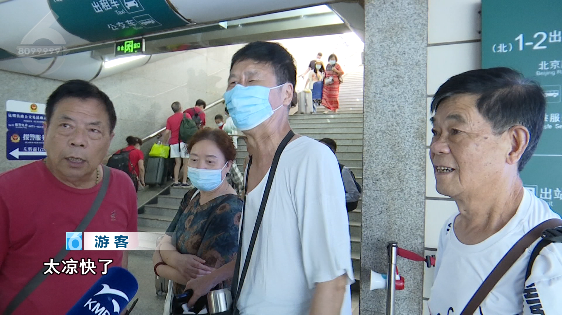游客:“我们来避暑,重庆很热,这里很好,天气很好,太凉快了,其他方面服务的态度也很好,挺好的,凉快,天气蛮好的,这里天气特别舒服。