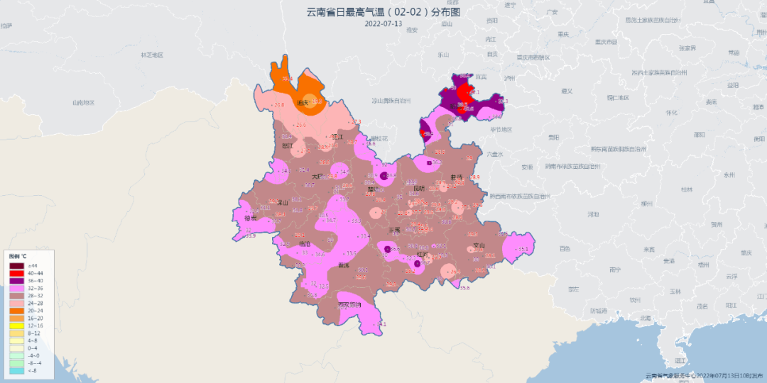 尤其是干热河谷地带,日最高气温屡屡飙升,像是昨天,在金沙江河谷、元江河谷局部地区出现高温天气,最高为盐津42.1℃,排名气温榜首。