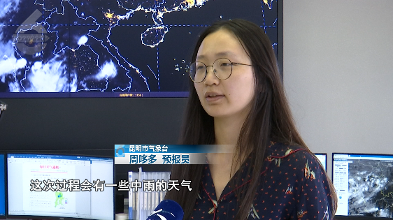 昆明市气象台预报员 周哆多:“二十八号到二十九号,有一次自北向南的过程 这次过程会有中雨的天气,局部地区会有大到暴雨的单点降雨情况,气温也会有所下降,最高气温会下降到23度左右。”