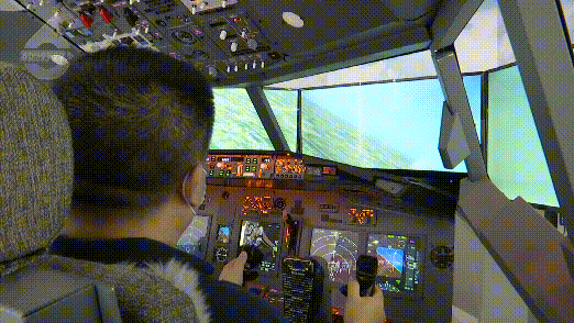 航空公司工作人员:“体验一个飞行员真正的工作环境,就是一比一的从起飞,一直到滑行、抬轮,操纵杆是一比一的还原,可以感受机长是怎样工作。”