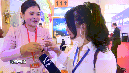 参展商:“今天我们要介绍缅甸的旅游景点,这是缅甸的蒲甘,还有海边的,很多中国人和外国人喜欢的,我推荐你这个是他们特色的红酒,是葡萄酒,度数不高,我觉得味道还挺好的,对女性也非常好。”