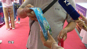 参观者:“买了好多的,挺多的挺便宜的,海藻,这个是木耳,这是香肠,这是咖啡,因为货真价实。”