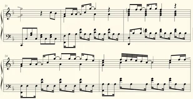前奏部分弦乐的编写,周杰伦借鉴了教会音乐的旋律特色,Ab转G的走向,初听便觉得圣洁而明朗。随后钢琴不慌不忙地加入,先琶音后分解,1517的循环像是内心的纠结与挣扎前行,让这首行板速度的抒情摇滚听起来格外紧张。