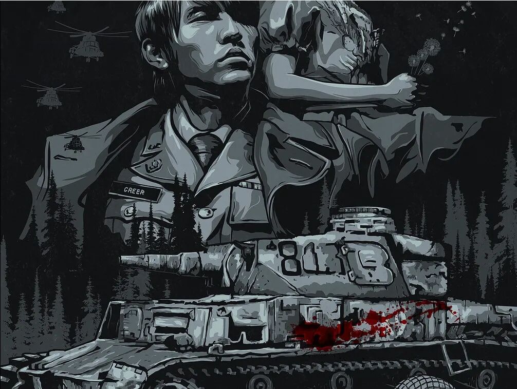 随着吉他节奏反复叩响,周杰伦的咬字慢慢坚硬果断,mv在时间空间的反复蒙太奇中停下视角,孩童内心叛逆的种种世界遐想最终化为一束温暖的田间夕阳,在地平线随远去的T-34驶向远方。