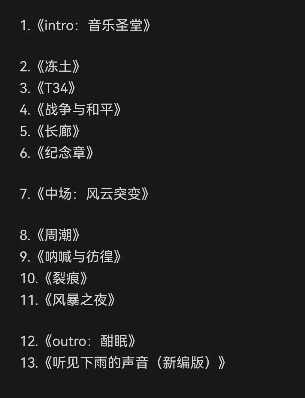 在暴雨过后,周杰伦用一段温和的钢琴旋律作为结尾。而风暴并未走远。左手不断重复的大三度仿佛在暗示着专辑该再开始从头循环,而右手若隐若现的旋律线则给人一种意犹未尽之感:这是专辑的第十二首作品,但周杰伦的四季还没有结束...