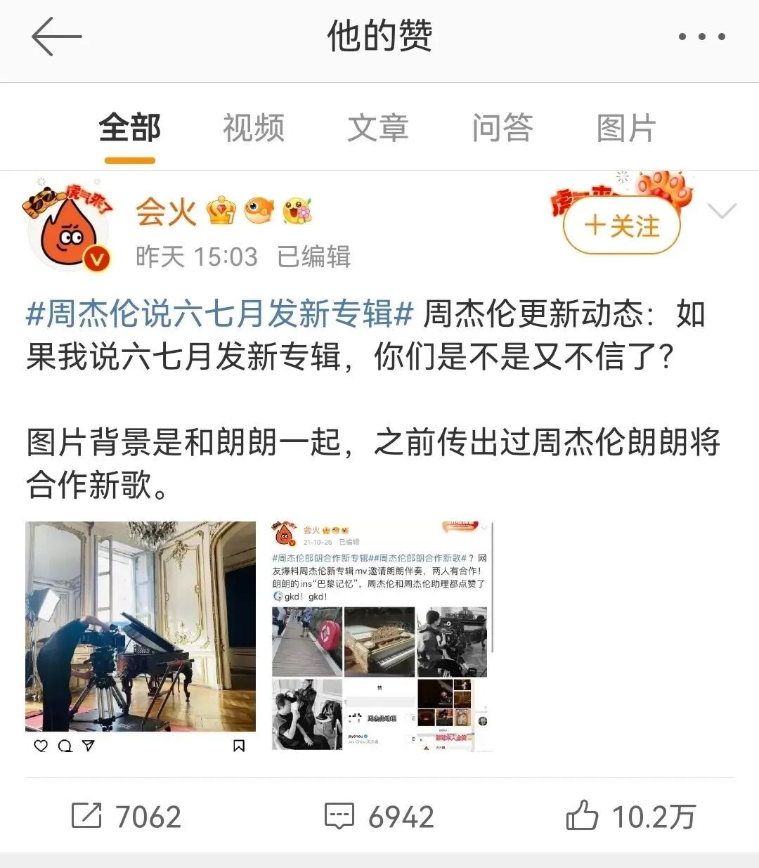 郎朗昨天也连续点赞多条周杰伦新专相关微博,基本确定合作