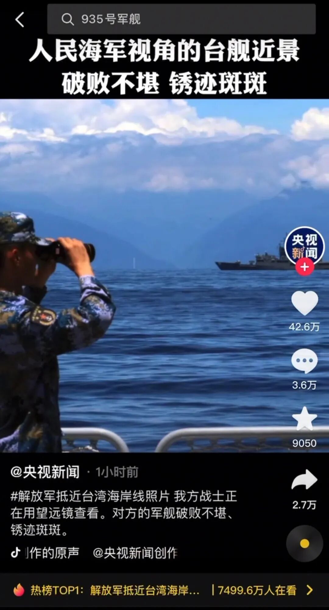 值得一提的是,在央视发布的#解放军抵近台湾海岸线照片#报道中,BGM选择了周杰伦新歌《最伟大的作品》中的一个片段。