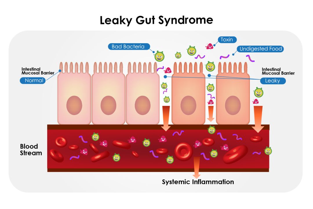 没有被完全消化的蛋白质或致病抗原通过肠漏进入血液后,激发了免疫反应。在特定的情况下,当这些抗原的三维结构接近于人体自身的抗原时,引发了交叉反应,致使我们自己的免疫系统攻击自己的组织(自身免疫)。