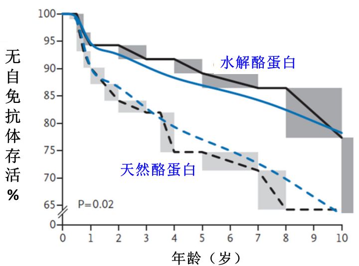 科学家把230名遗传易感儿童分成两组,分别进行深度水解奶粉和普通奶粉的喂养。结果深度水解奶粉喂养的婴儿在10岁以内患1型糖尿病的几率果然大幅下降[16]。这项研究是对BCM7理论的有力佐证。