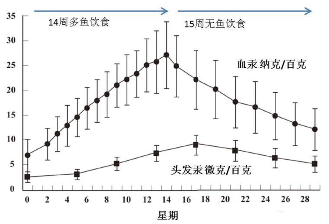 研究发现,吃鱼可以升高血液汞浓度,反之如果停止吃鱼,血汞随之下降[9]。