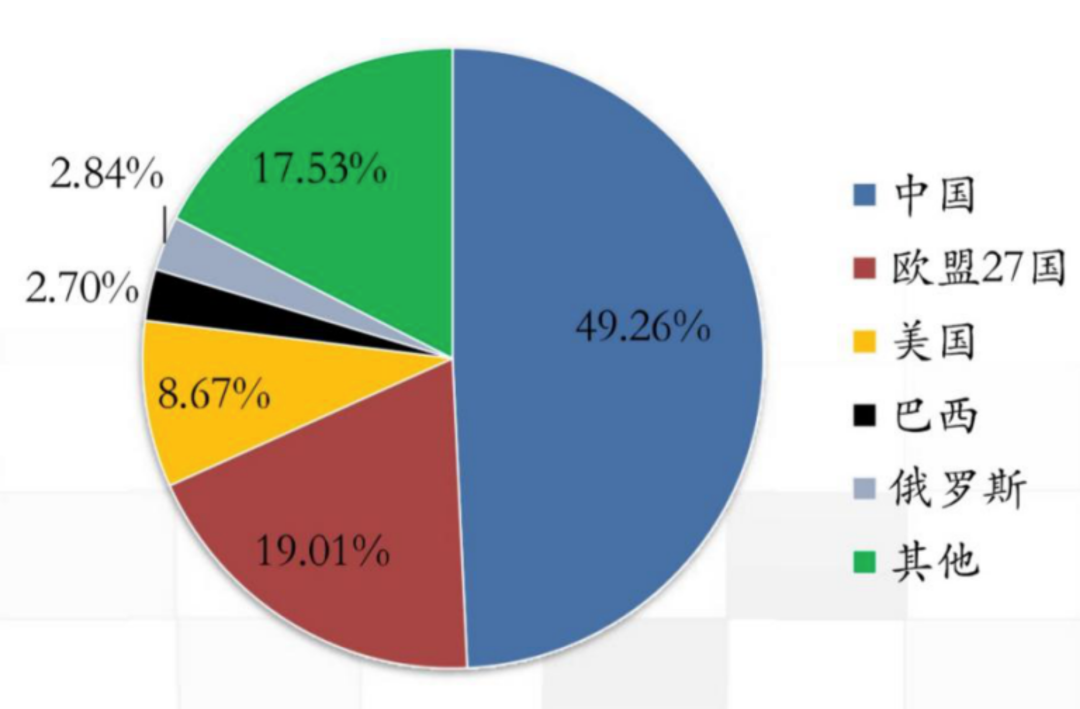 以下是2018年全球猪肉消费量占比图,中国猪肉消费量已占到了全球消费量的将近百分之五十。
