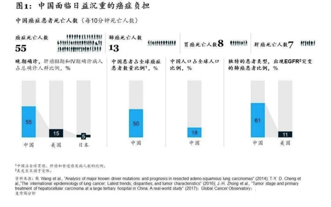 下图为2021年中国占世界胃癌、肝癌和食道癌发病人数的比例。仅占世界人口百分之十八的中国却占了全世界这些癌症的发病率的一半以上。